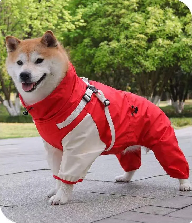 While maintaining the fashionable style, Energetic Red Raincoat can also keep the dog's fur dry.